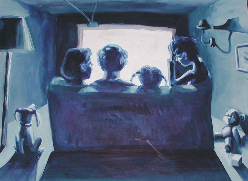 przedstawiający rodzinę przed telewizorem. Obraz jest doskonałym